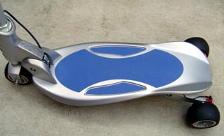 ある程度蹴りながら速度を上げてから、両足をボードに乗せて滑走するのもサイズがでかいだけに簡単!