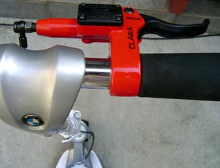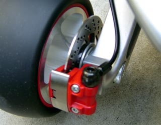 ハンドルについたブレーキシステムや、タイヤ横に見える赤いキャリパーがクールすぎます。