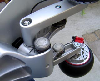 キックボードの分際で、ダブルジョイントスィングアームの独立懸架のサスペンションですよ!