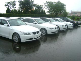 E60-5シリーズたち。しかも白が多い〜。白いE60が複数台並ぶと壮観だなぁ。