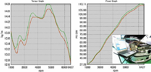 その効果は、右のデーターが示しているとおり、全域にわたった向上が見られるのと同時に、データでは示すことのできない、実際の『体感』で実証することができます。 |