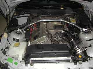 エンジン房内:ぶっといタワーバーが一際目立ちます