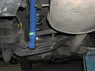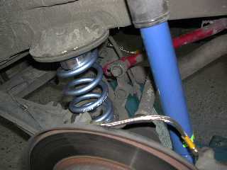 リヤサス部:ブルーメタのばねとステンメッシュホースがイカしてます。赤いのはもともとつけていたアイバッハスタビ