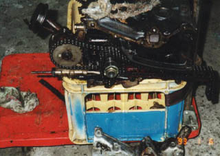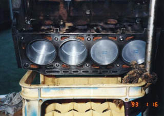 にはヘッドを降ろし、正月をはさんで1月6日にシリンダブロック以下をチェーンブロックで吊り上げ