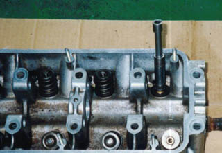 上左から右へ元から研磨後のバルブ。ステムに布ガムテープを3回巻きつけ