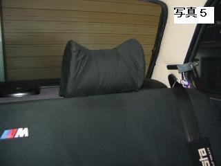 @バケットシート装着により、遊んでいる前席のシートの枕を後席へ流用。共布でカバーを