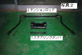 ボールジョイントとテンションロッド(以下、「ロッド」と略。写真2参照)のブッシュ部の間を